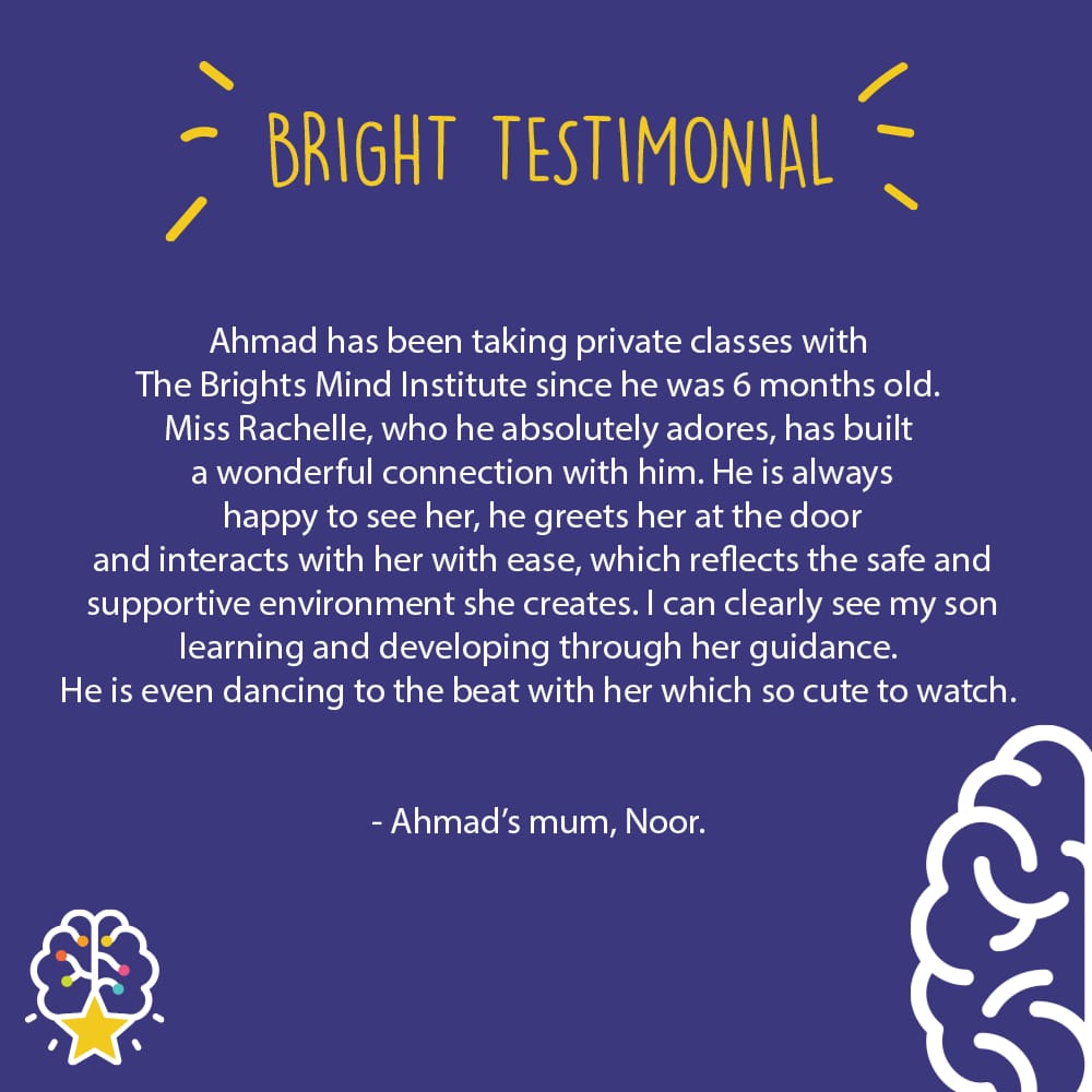 Ahmad has been having private WHOLE BRAIN TRAINING classes twice a week since he was 6 months old. He is now almost 1 and a half. Ahmad has a very sweet and smiley personality. He sits in his chair for the full 45-minute class and is completely focused throughout! He enjoys the choosing activities, eye-tracking and all songs! Ahmad is especially BRIGHT when it comes to using his pointer-finger on his alphabet mat & searching to find specific pictures that match with letters. Well done, Ahmad! We are so proud of you! ⭐️